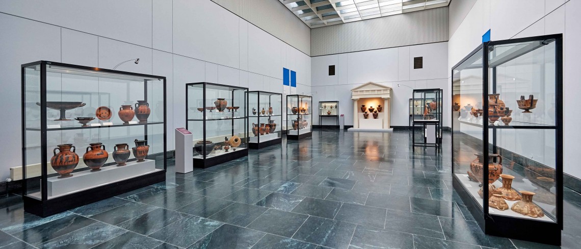 Auf der Südseite des Königsplatzes gelegen sind die Staatlichen Antikensammlungen. Sie beheimaten eine der wichtigsten Sammlungen griechischer, etruskischer und römischer Kleinkunst: Vasen, Bronzen, Terrakotten, Glas und Goldschmuck vom 3. Jahrtausend v. Chr. bis ca. 500 n. Chr. Reich dekorierte und aufwendig bemalte Tongefäße führen die vielgestaltige Bilderwelt des griechischen Mythos und Alltags vor Augen.